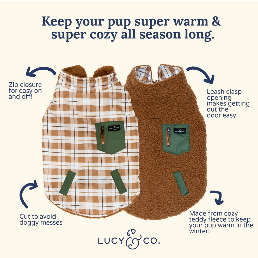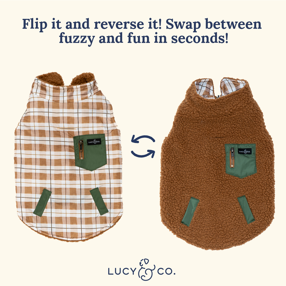 ¡Listos para conquistar cualquier sendero con estilo! El Plaid Hike Reversible Teddy Vest combina el encanto clásico del estampado de cuadros con la practicidad de un diseño reversible. Ideal para peludos aventureros que disfrutan del aire libre sin renunciar al confort.