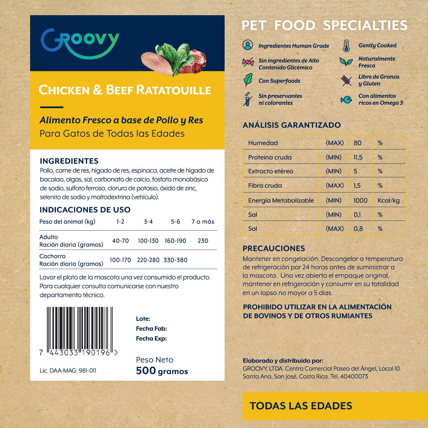 Nuestra receta de Pollo y Res para gatos adultos está formulada con ingredientes de grado humano y carne como base principal, aportando proteína de alta calidad y fácil digestión.