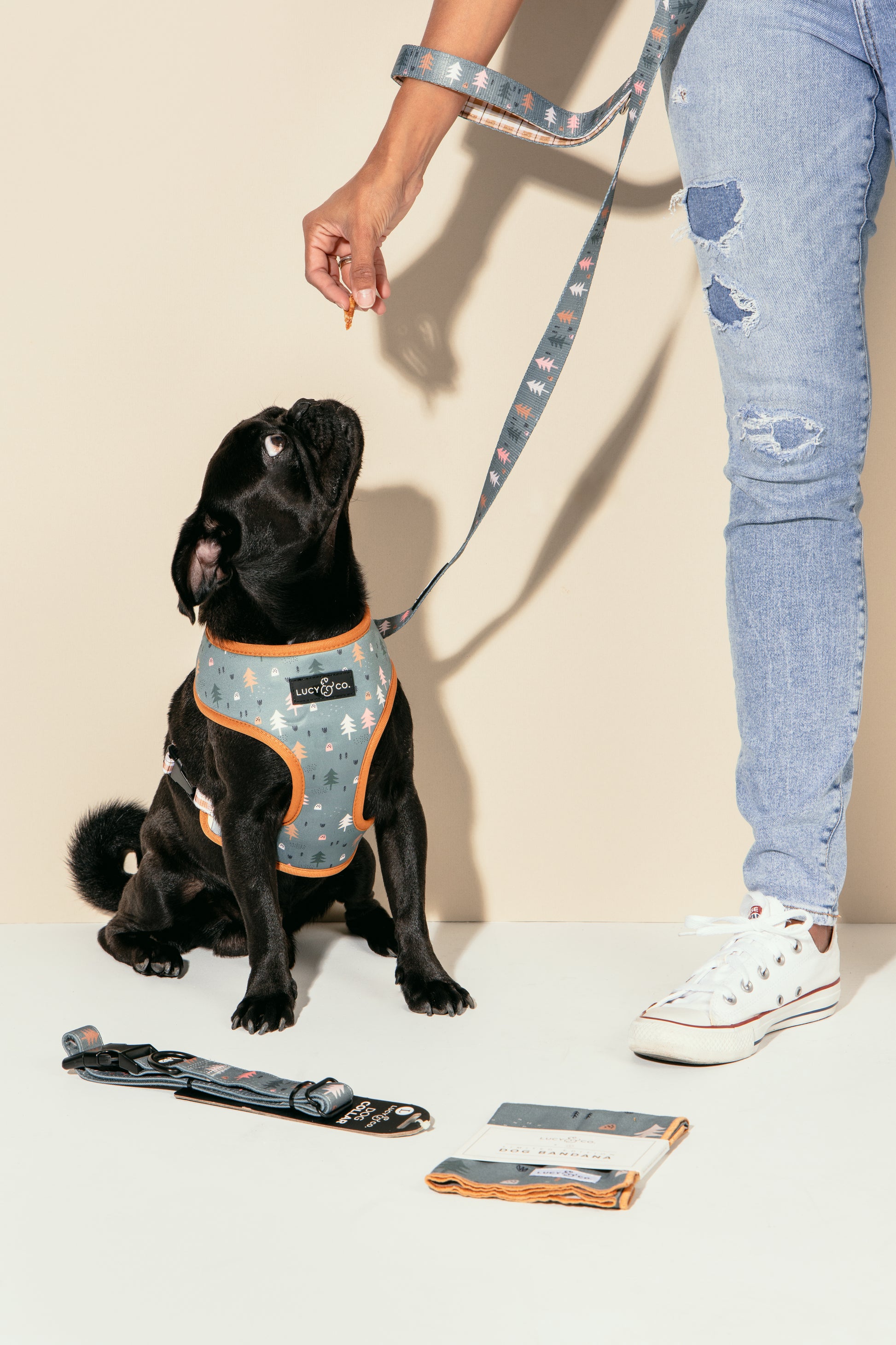 ¡Hora de explorar! El Take a Hike es el arnés ideal para peludos aventureros que disfrutan cada caminata como una nueva expedición. Su diseño reversible combina tonos naturales y motivos inspirados en la montaña, perfecto para quienes aman la vida al aire libre.