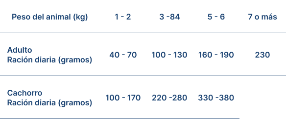 - Si es la primera vez de de tu peludo con el alimento, seguí el cronograma de transición.